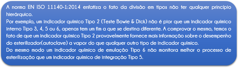 Uma outra alteração importante na norma EN ISO 11140-1 foi a definição de novos requisitos de desempenho para os seguintes indicadores químicos: