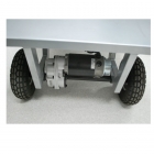 Conjunto de motor elétrico e redutor planetário acoplados, alimentado através de uma caixa aletada com duas baterias automotivas de 35 amperes, ligadas em série, perfazendo uma alimentação de 24 VDC, caixa de comando eletrônico blindada com conectores e fusíveis de proteção para sobrecargas